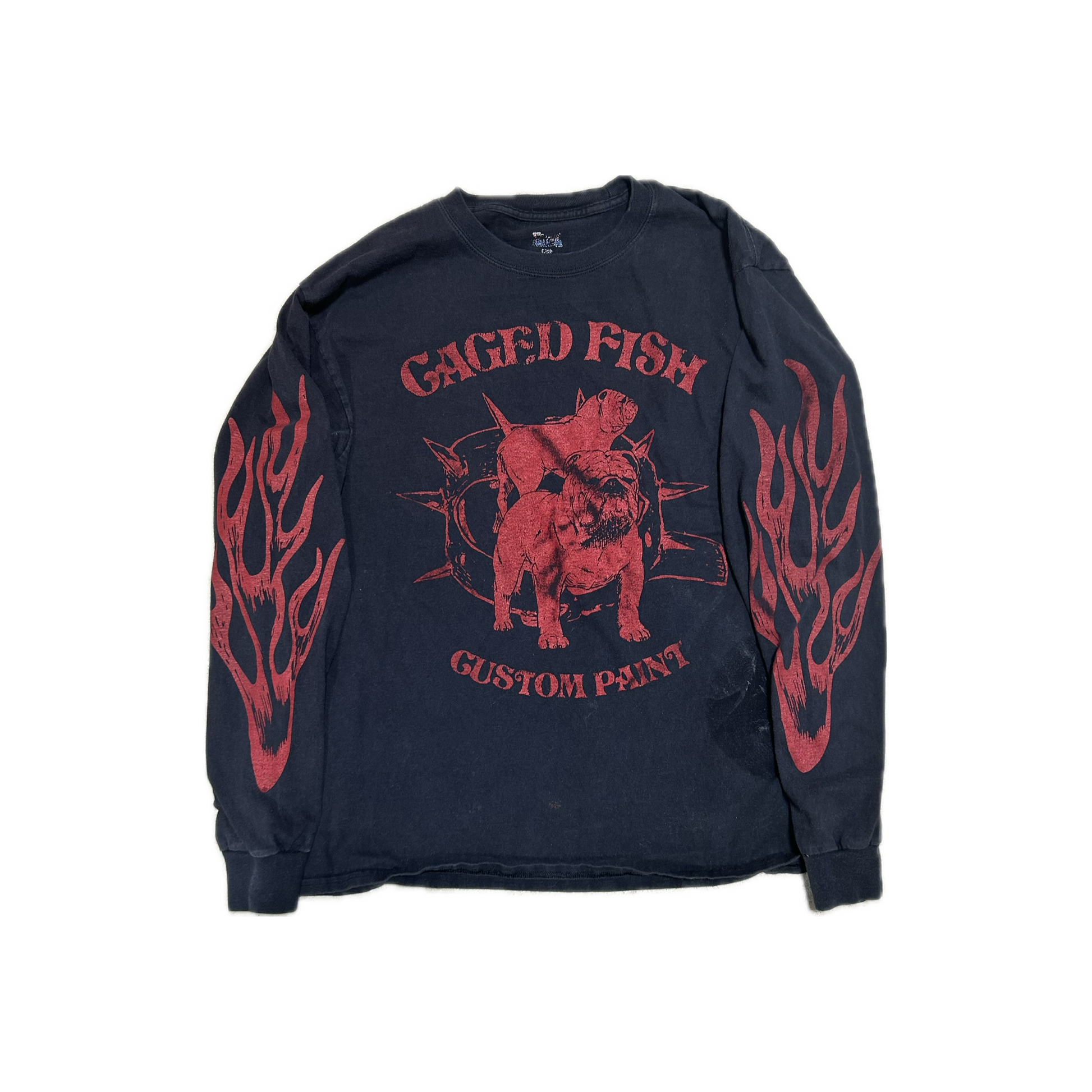 PRINTED ON VINTAGE BLANK. WORN IN PERFECT, SOME STAINS.